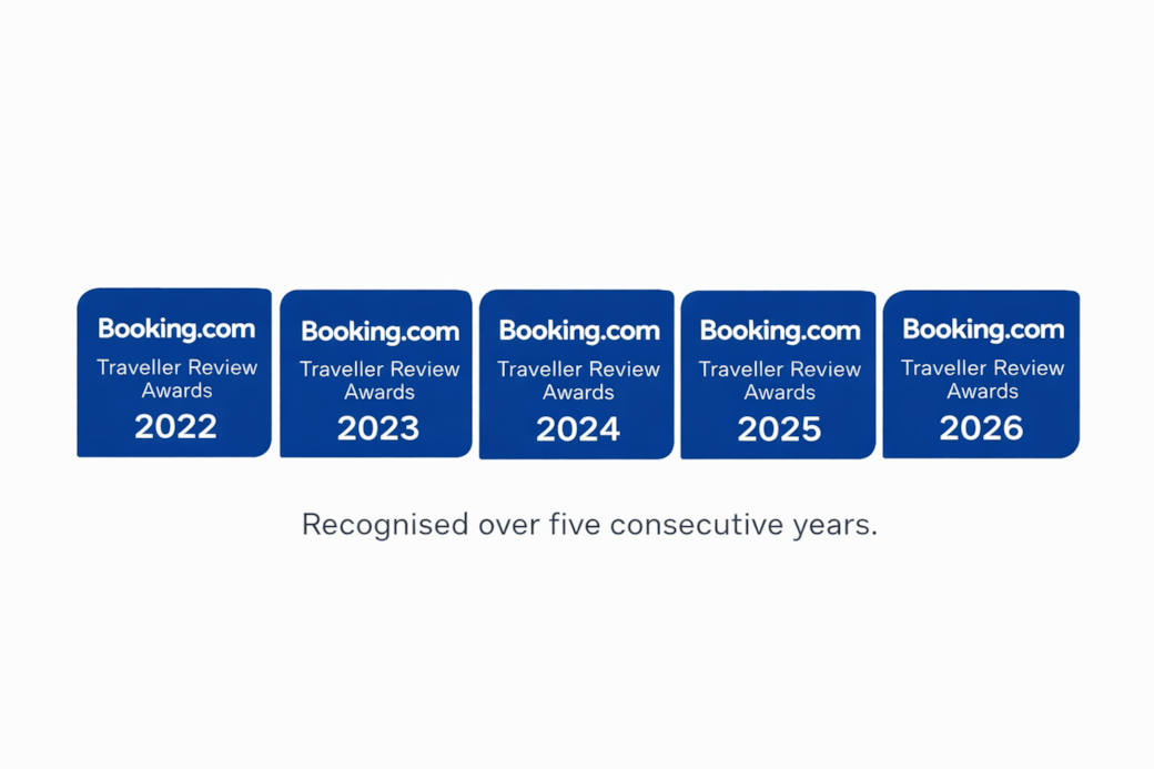 Consistently excellent guest reviews across major booking platforms.